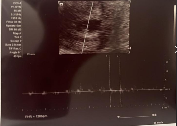 9月6日做B超查胎心,當日為孕6週+3天,B超報告:已見胎心,頭臀長0.57cm,胎心116bpm,恭喜順利見胎心!